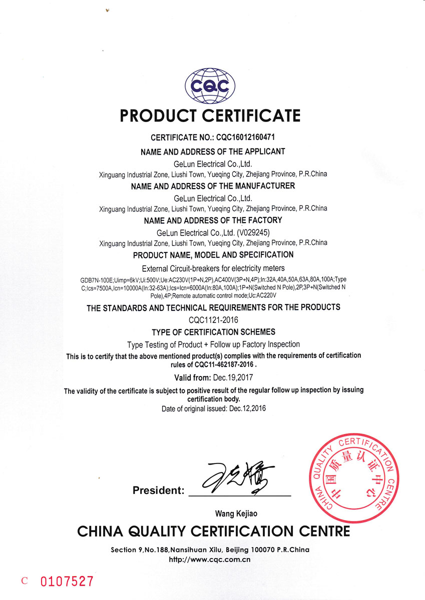 GDB7N-100E/ GDB7-125E external miniature circuit breaker for electricity meter, used for information collection system management, based on the balance of the user's electricity account, the circuit breaker is controlled by the prepaid electric energy meter. It is used in overload or short circuit protection of the lighting, distribution line and equipment under the circumstance of the rated insulation voltage of the circuit breaker is 500V, the rated working voltage is AC230V/400V, the remote automatic control voltage is AC230V, and the rated current is up to 125A.