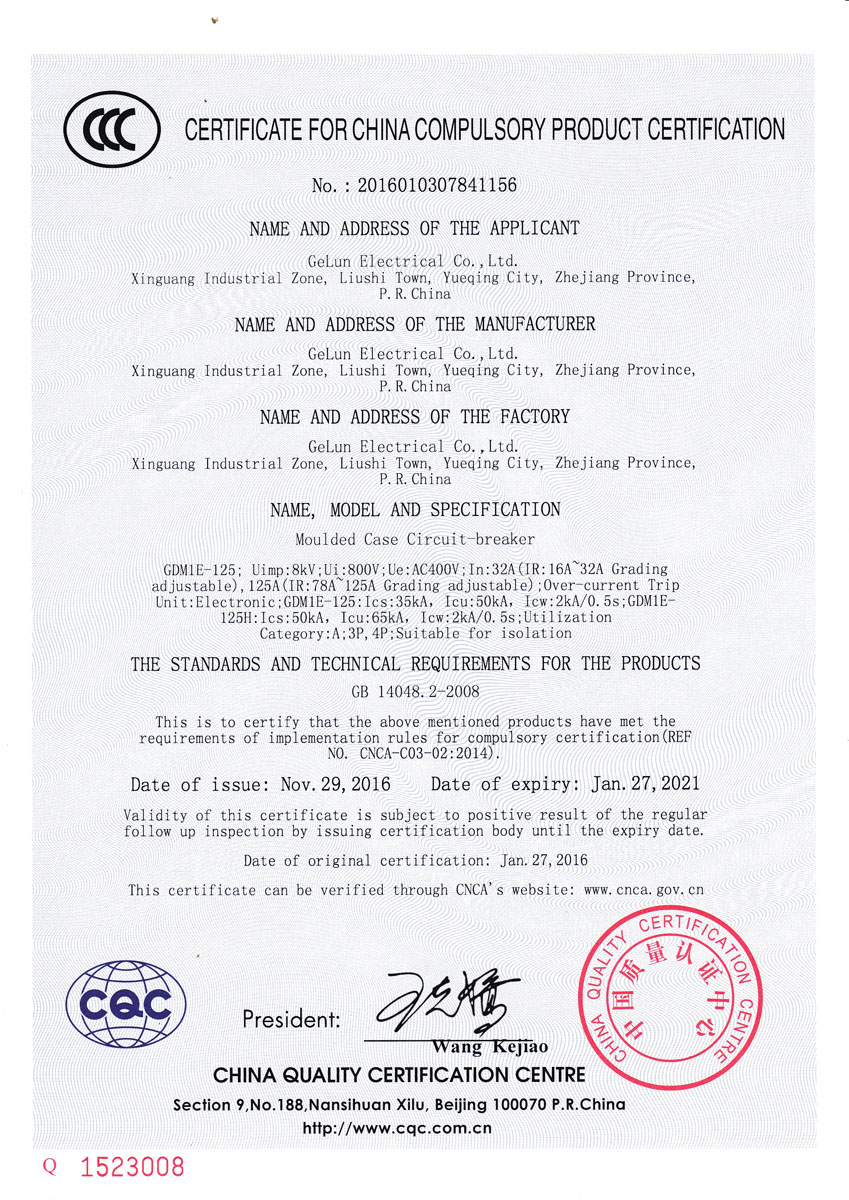 Comply with the IEC60947-2、GB/T 14048.2 Standard
