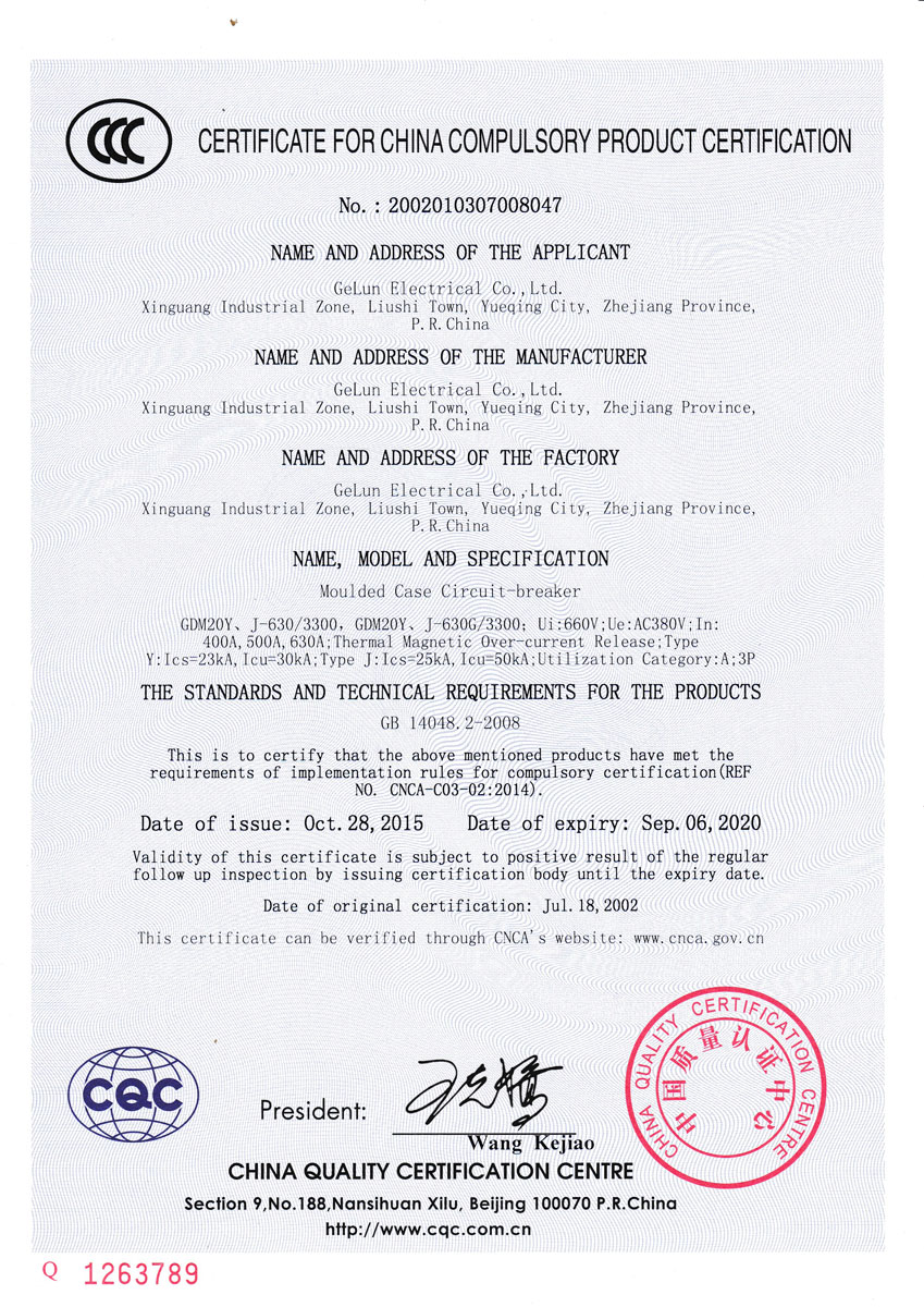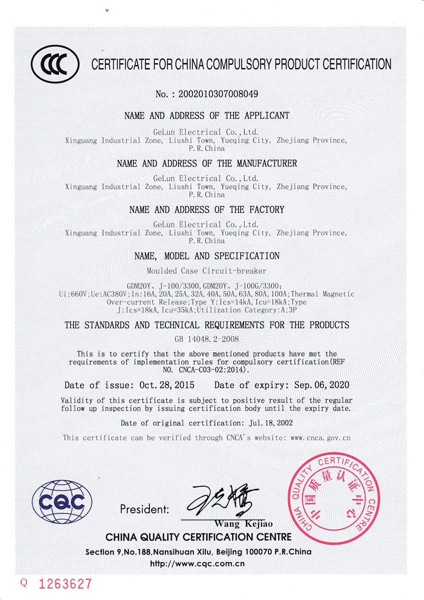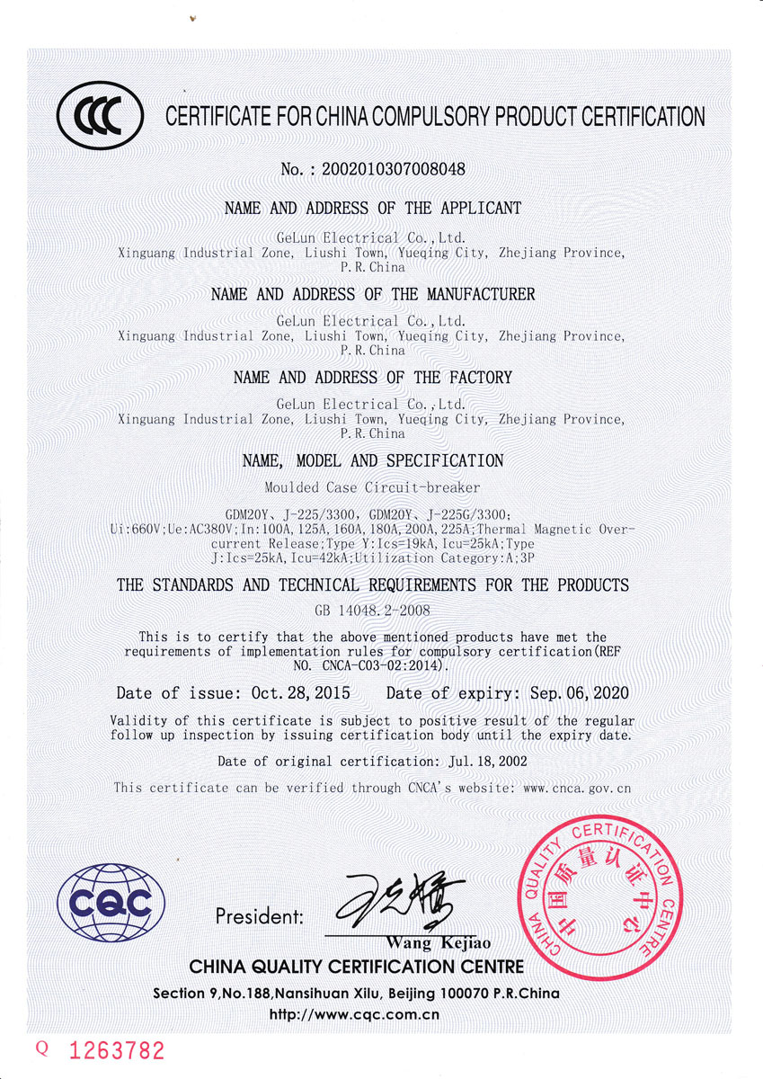 Comply with the IEC60947-2、GB/T 14048.2 Standard