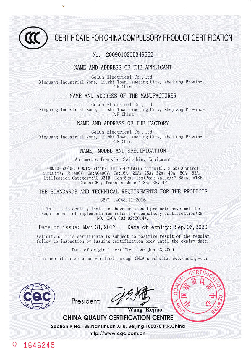 GDQ1X series dual power automatic transfer switch belongs to CB grade, suitable for AC 50Hz / 60Hz, rated working voltage 230/400V, rated current up to 63A of dual power supply system. In the case of common power failure, the switch can be applied with standby power or power generation automatic switching of the machine to ensure the reliability and safety of the power supply. It is used to ensure that power supply places such as hospitals, shopping malls, banks, fire-fighting, high-rise buildings, etc. guarantee powered keeping on. The product has a flame-fighting interface, which can be easily linked with the flame-fighting equipment, and the switch is remotely controlled to cut off the power. The flame-fighting product has a generator interface to automatically start or stop working of the generator.