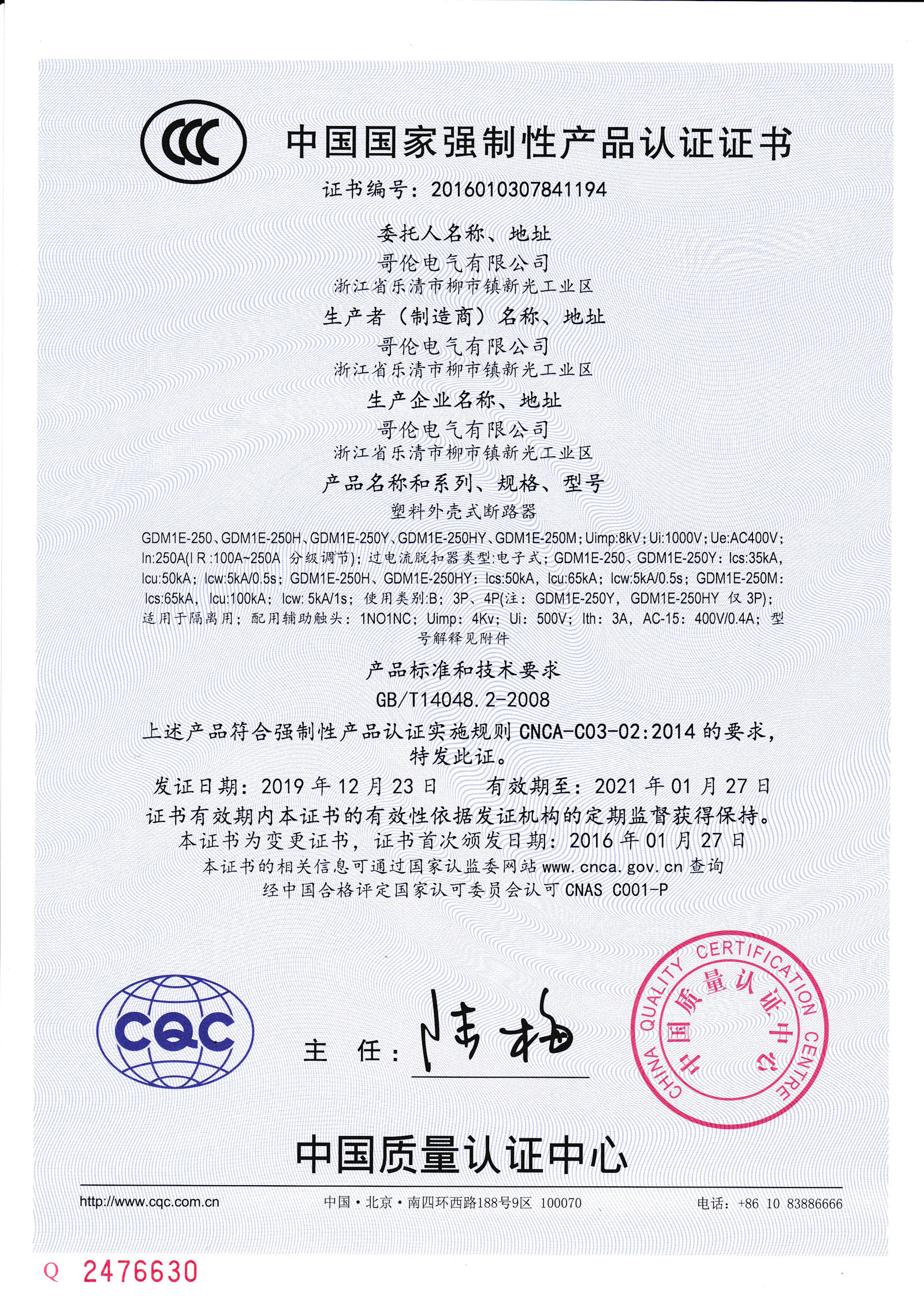 產(chǎn)品符合IEC60947-2、GB/T 14048.2標準。
