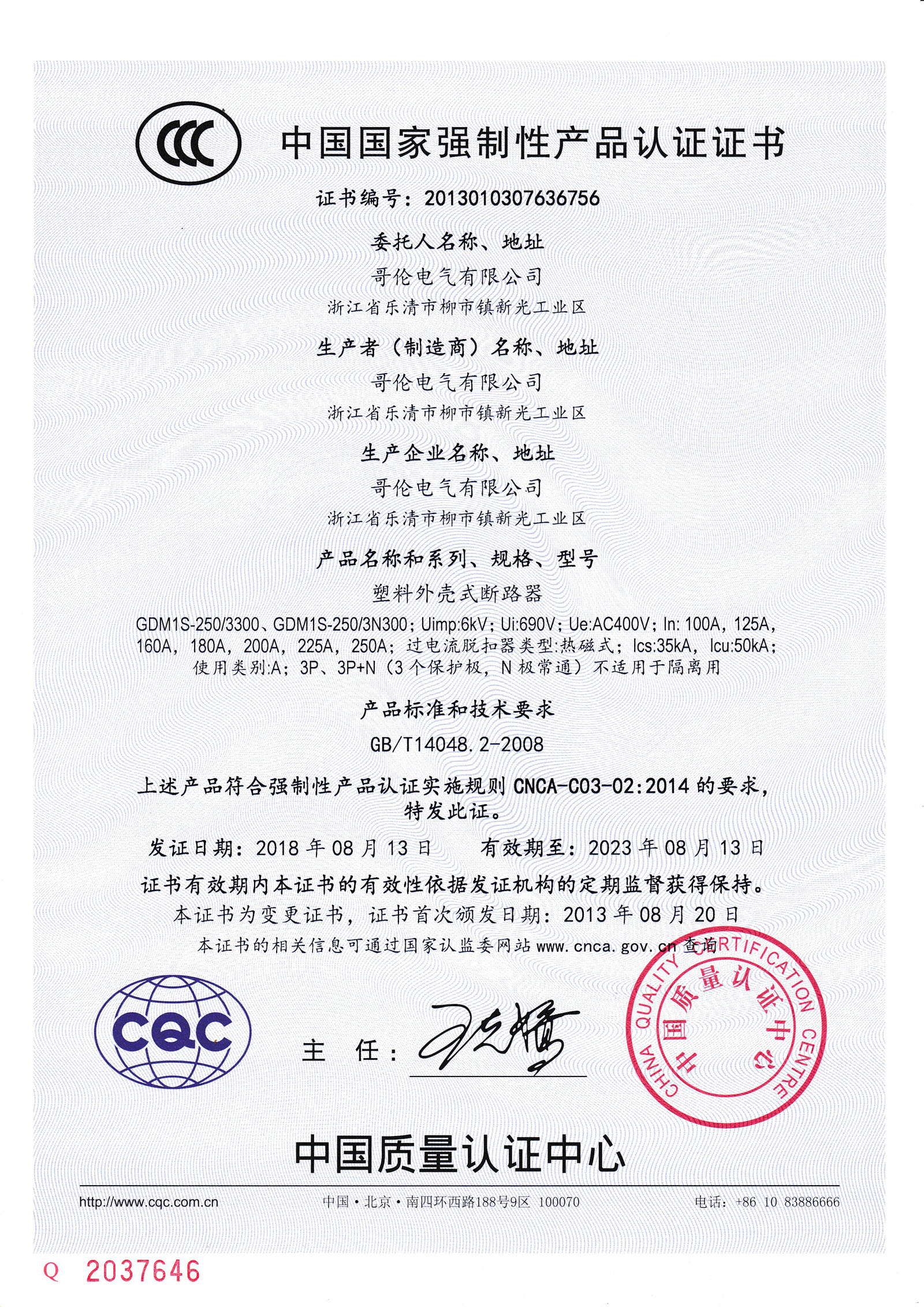 產(chǎn)品符合IEC60947-2、GB/T 14048.2標準。